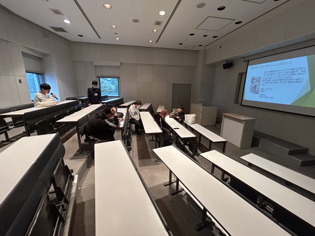 選書ツアー前日には直前ミーティングを実施しました。図書館員による選書ツアー当日の確認事項の説明、参加学生によるマンガ選書に関する意見交換をおこないました。「このマンガを図書館に入れたい」「このマンガをみんなに読んでもらいたい」など、推薦したいタイトルについて熱く語ってくれました。